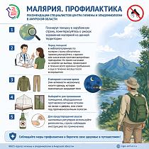 - Планируя поездку в зарубежную страну, поинтересуйтесь о рисках заражения малярией на данной территории;